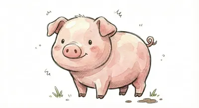 Ein süßes, illustratives Schweinchen auf grünem Gras.