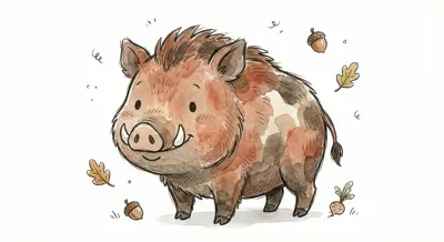 Niedliches, gezeichnetes Wildschwein auf einem weißen Hintergrund.