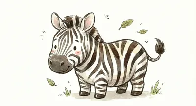 Niedliches, cartoonhaftes Zebra mit großen Augen und einem fröhlichen Ausdruck.
