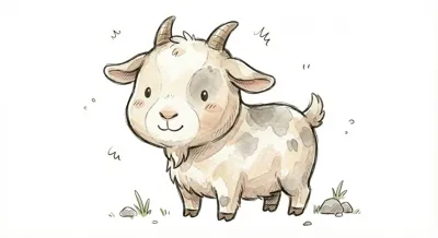 Eine niedliche, gezeichnete Ziege mit kleinen Hörnern und freundlichem Gesicht.