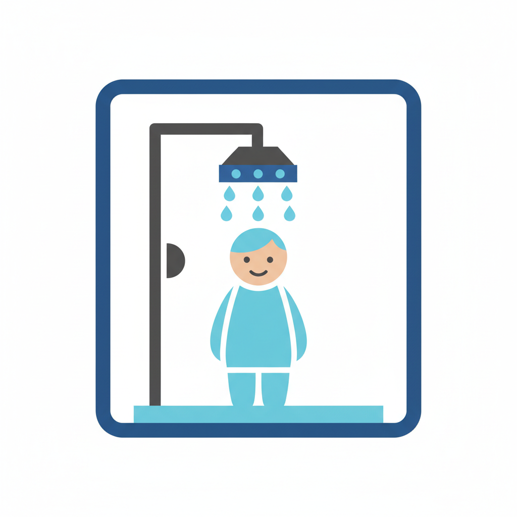 Ein stilisiertes Icon zeigt eine Person, die unter einer Dusche steht.