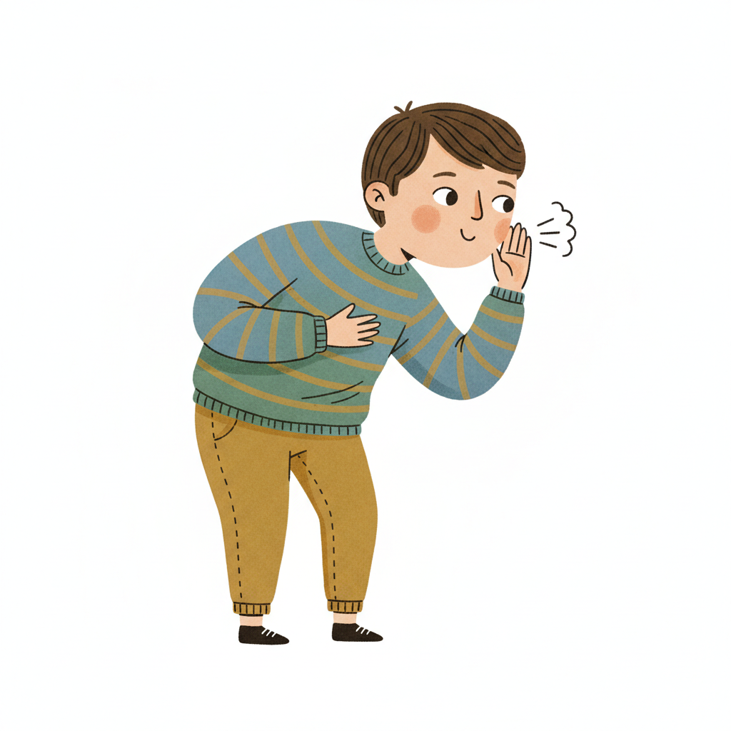 Ein Junge flüstert mit einem geheimnisvollen Ausdruck.