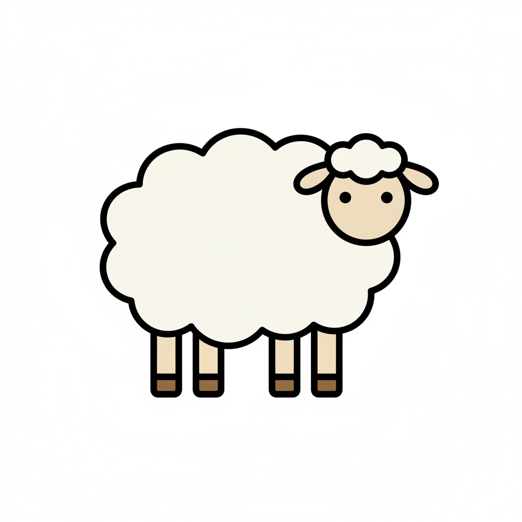 Ein einfaches, niedliches Schaf-Icon mit weißen Wolle und braunen Beinen.