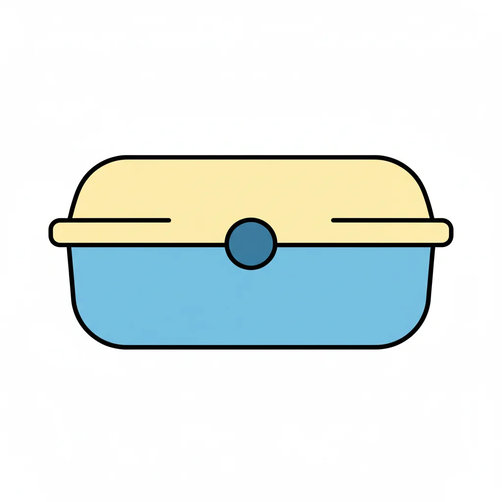 Ein schlichtes, gezeichnetes Aufbewahrungsetui mit einem Griff.