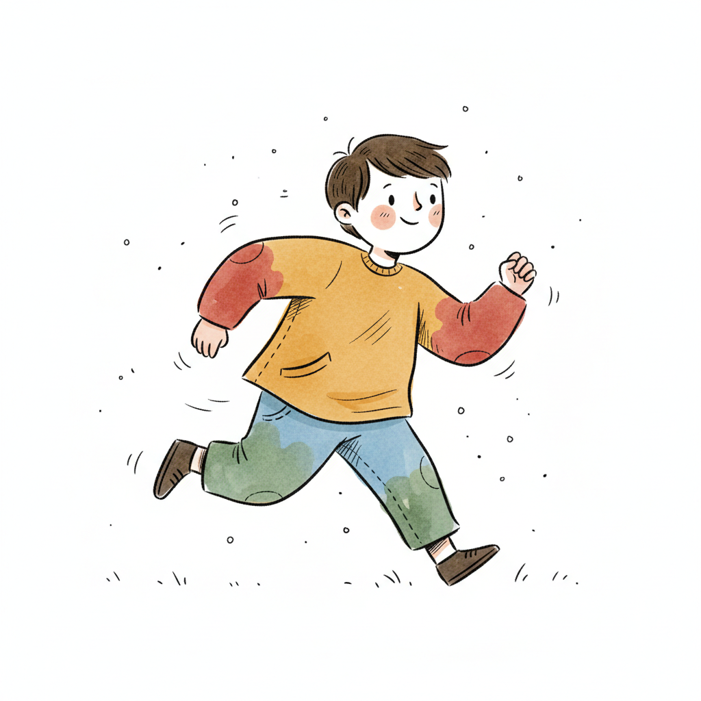 Glücklicher Cartoon-Junge rennt mit einem Lächeln. Aquarell-Illustration.