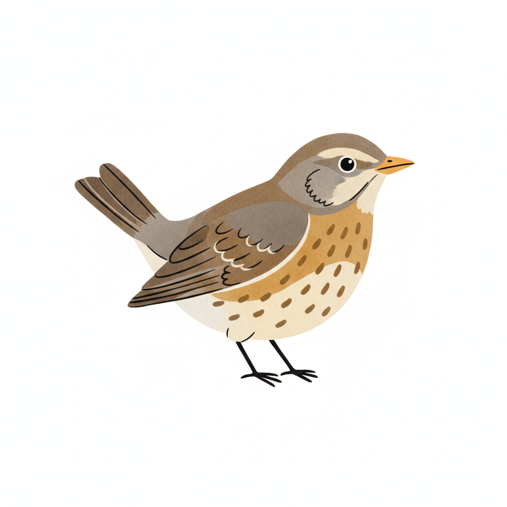 Ein stilisierter Vogel mit braunem Gefieder und charakteristischen Flecken.