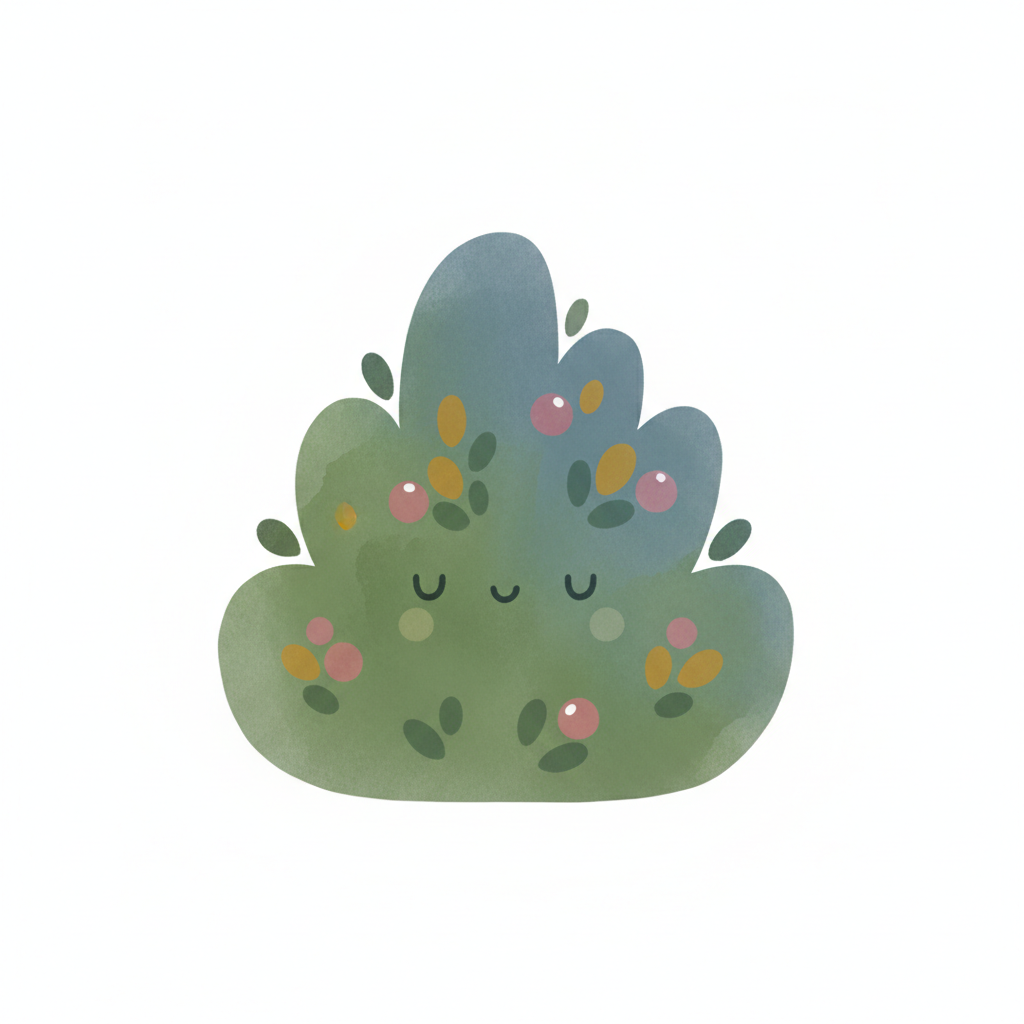 Ein niedliches, lächelndes Busch-Design mit bunten Pflanzen.