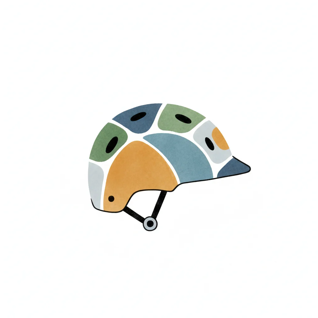 Bunter Fahrradhelm mit geometrischen Formen und fröhlichen Farben.