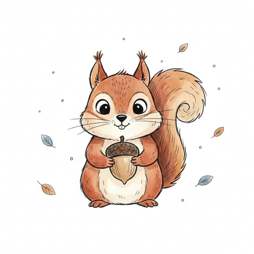 Niedliches, kindgerecht illustrierte als einzelnes, zentriertes Wesen vor weißem Hintergrund, im frech-nordischen Aquarell-Skizzenstil. Klare, leicht wackelige Tuschekonturen, sichtbare Pinsel- und Strichtextur, dezente Schraffuren, weiche handgemalte Farbflächen in gedeckten Farben. einfache Formen. Keine harten Schatten, sondern sanfte, transparente Aquarellschichten. Leicht raue, handgezeichnete Linien statt glatter Vektorkanten. Subtile, vereinzelte Kritzelpunkte oder kleine Details im Hintergrund, aber keine echte Szene. Tier steht oder schwebt mittig. Insgesamt charmant, humorvoll, warm und handgemacht wirkend, wie eine moderne Kinderbuchillustration auf weißem Hintergrund. WICHTIG: Das Bild darf ABSOLUT KEINEN TEXT, KEINE BUCHSTABEN und KEINE ZAHLEN enthalten.