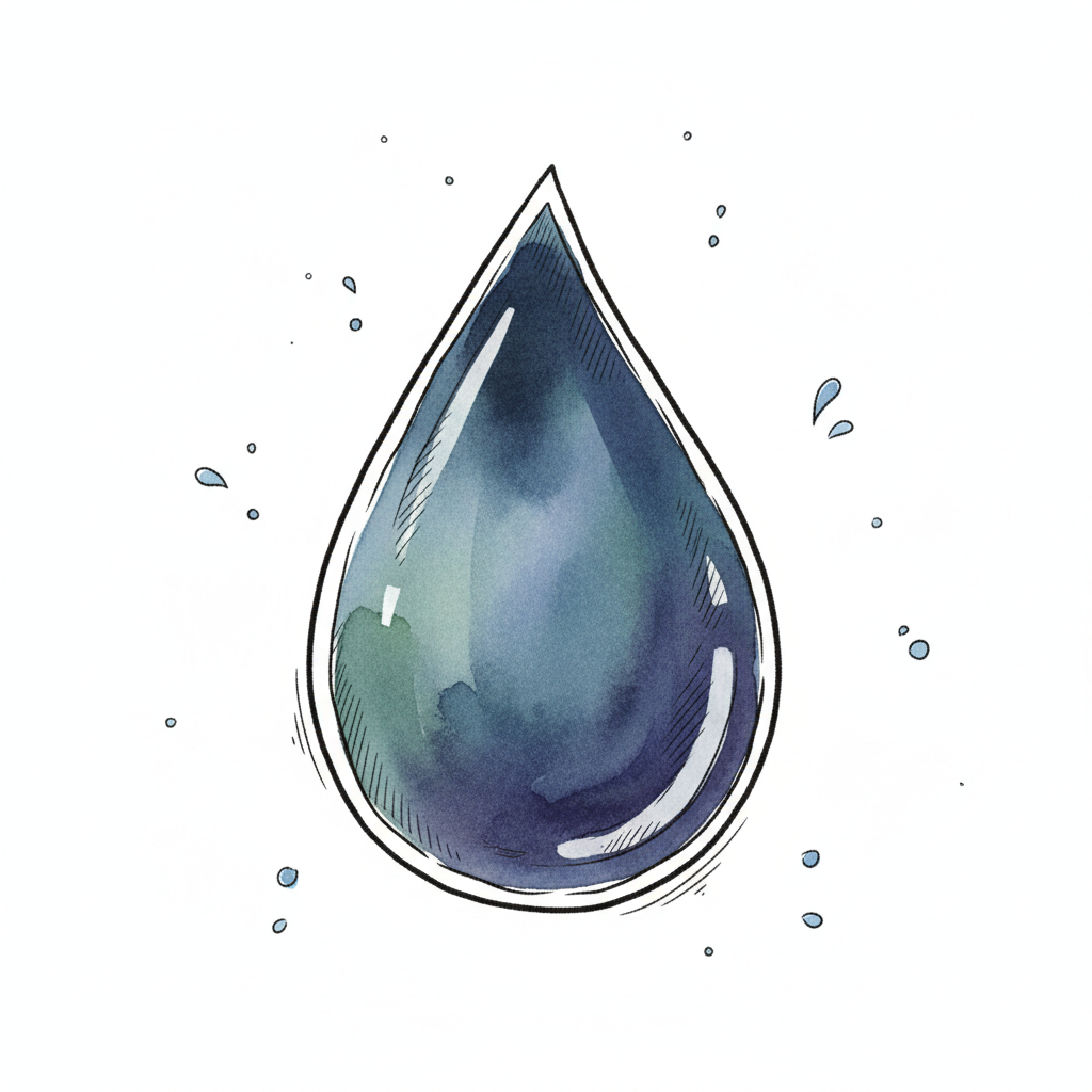 Wassertropfen in Aquarell-Optik mit blauen und grünen Farbtönen und kleinen Spritzern.