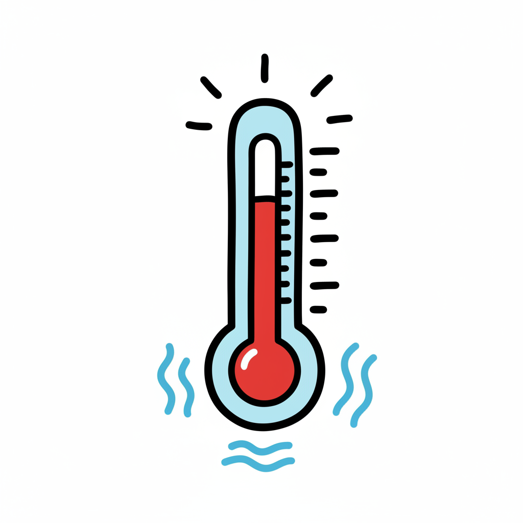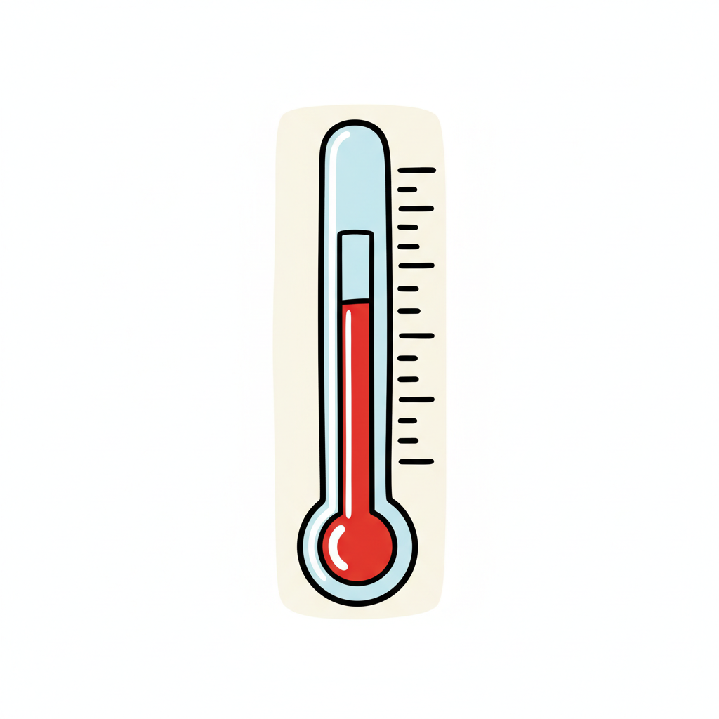 Ein Cartoon-Thermometer mit roter Flüssigkeit, das eine Temperatur anzeigt.