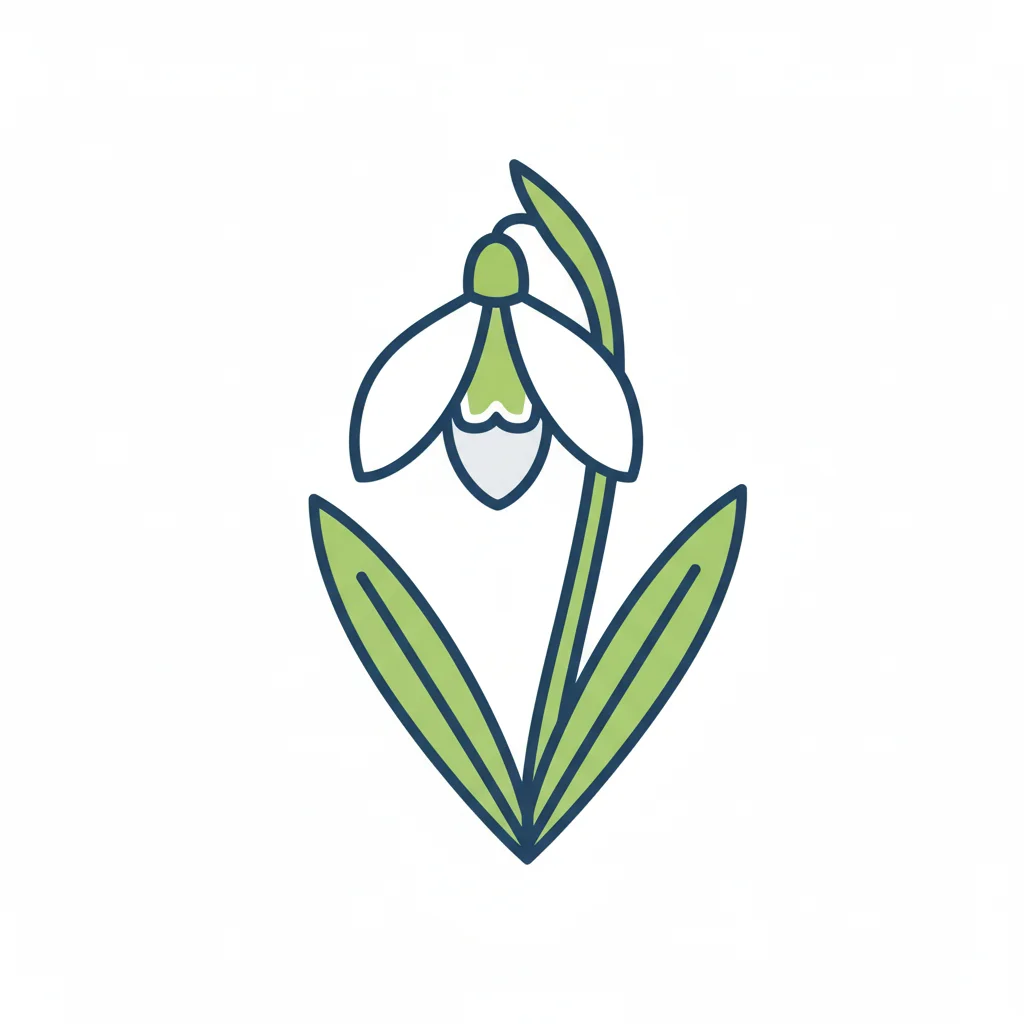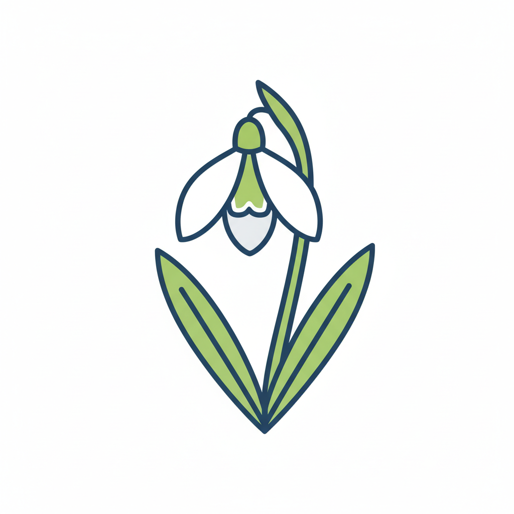 Stilisiertes Schneeglöckchen-Icon in Weiß und Grün, symbolisiert Frühling und Neubeginn.