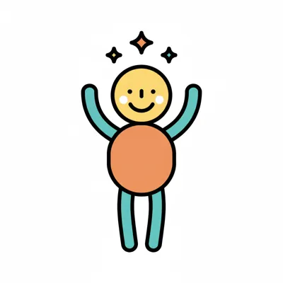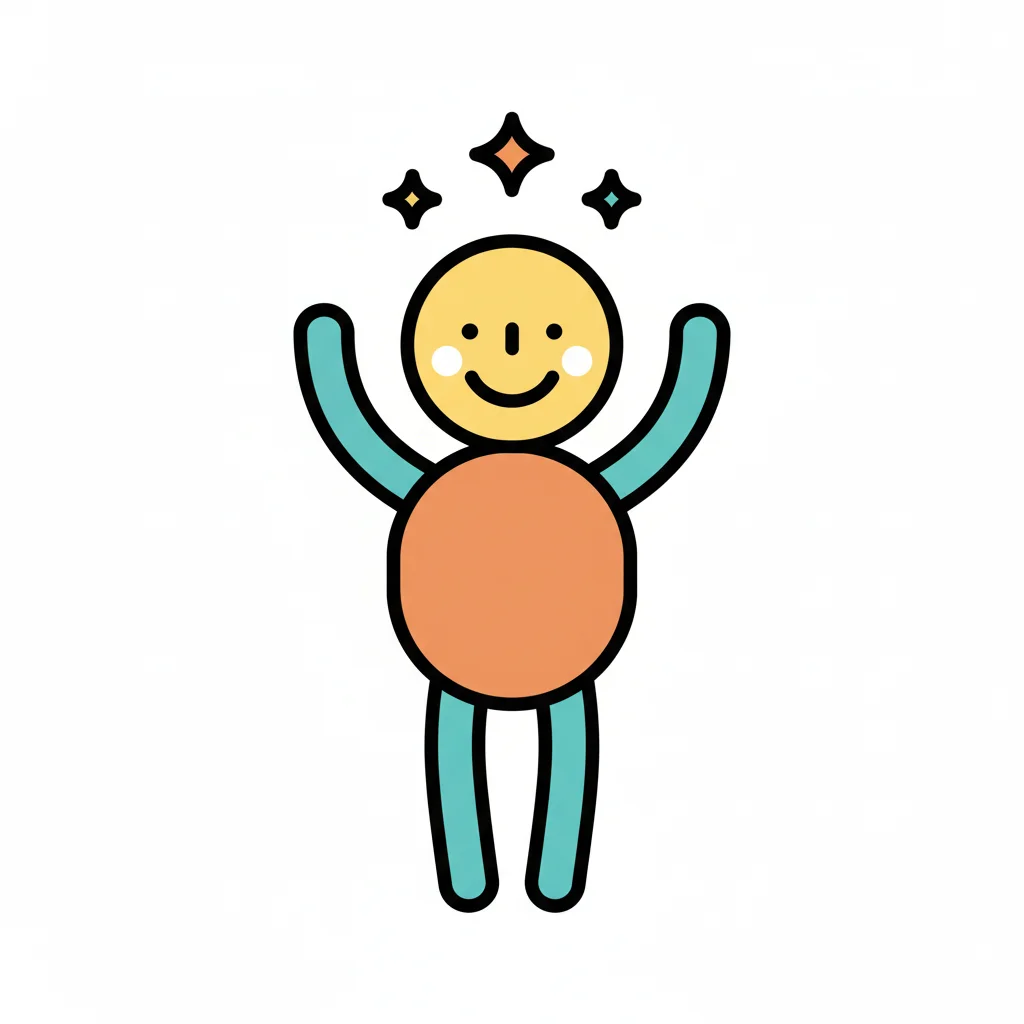 Bunte Illustration eines fröhlichen Charakters mit strahlendem Gesicht.