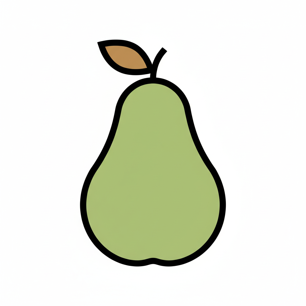 Ein stilisierter, grüner Birnenumriss mit einem Blatt.