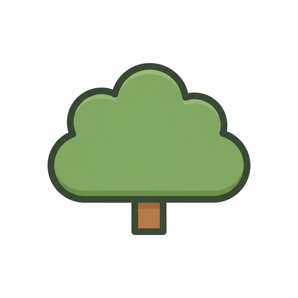 Ein stilisierter, grüner Baum mit braunem Stamm.