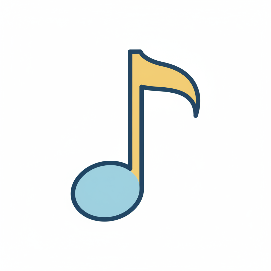 Schlichte Notenmikrofon-Grafik in gelb und blau.