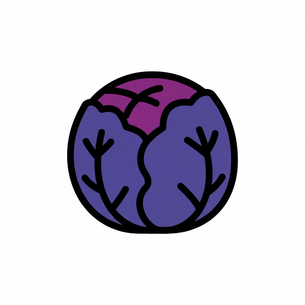 Grafische Darstellung eines lila Kohls mit stilisierten Blättern.