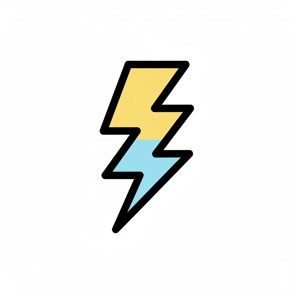 Ein stilisierter Blitzsymbol in Gelb und Blau mit schwarzem Rand.