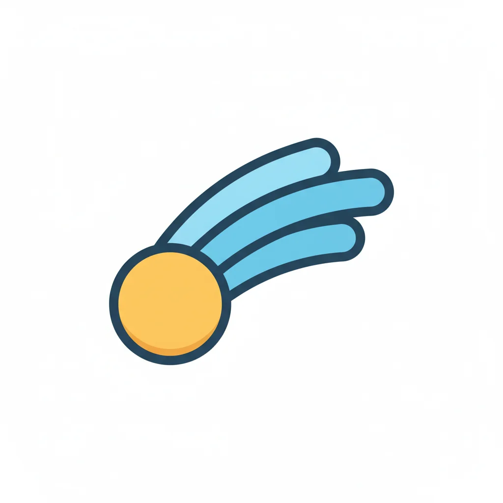 Ein grafischer Komet mit einem gelben Kopf und blauen Schweifen.