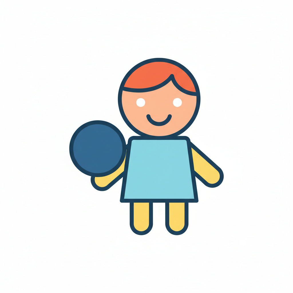 Minimalistische Vektorillustration im flächigen Icon-Stil. Sehr einfache, reduzierte Formen mit klaren, dicken Konturen und wenigen Details. Flächige Farben ohne Verläufe oder Texturen, ruhige Farbpalette, klare Silhouette und gut lesbare, freundliche Figur. Moderne, kindgerechte Lernillustration im Stil einfacher Piktogramme, sauberer Hintergrund und übersichtliche Komposition. Hoher Kontrast, isoliert auf weißem Hintergrund. WICHTIG: KEIN TEXT im Bild. Hintergrund: Rein weiß.