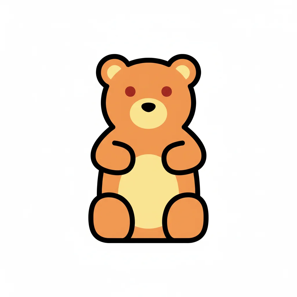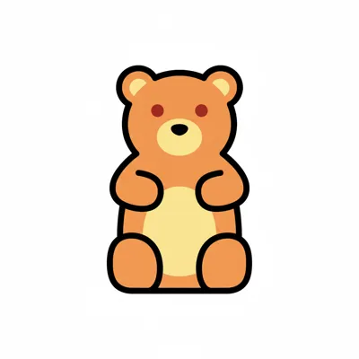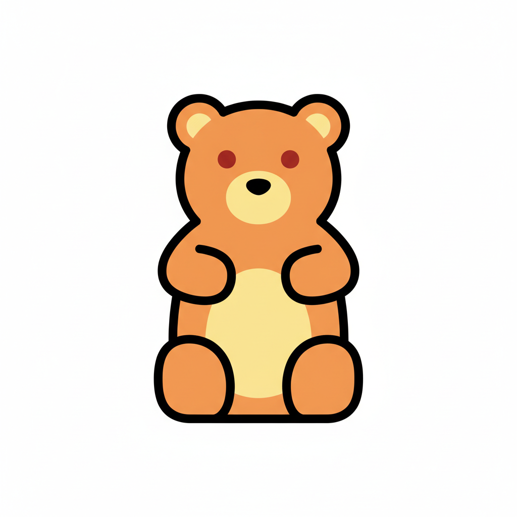 Ein süßer, orangefarbener Cartoon-Teddybär mit roten Augen und schwarzem Umriss auf weißem Hintergrund.