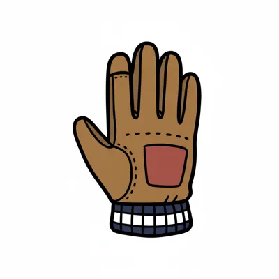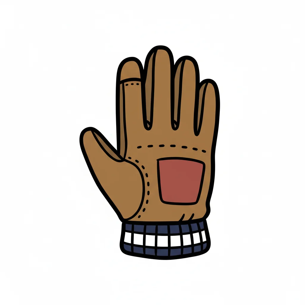 Ein brauner Handschuh mit kariertem Saum und einer roten Tasche.