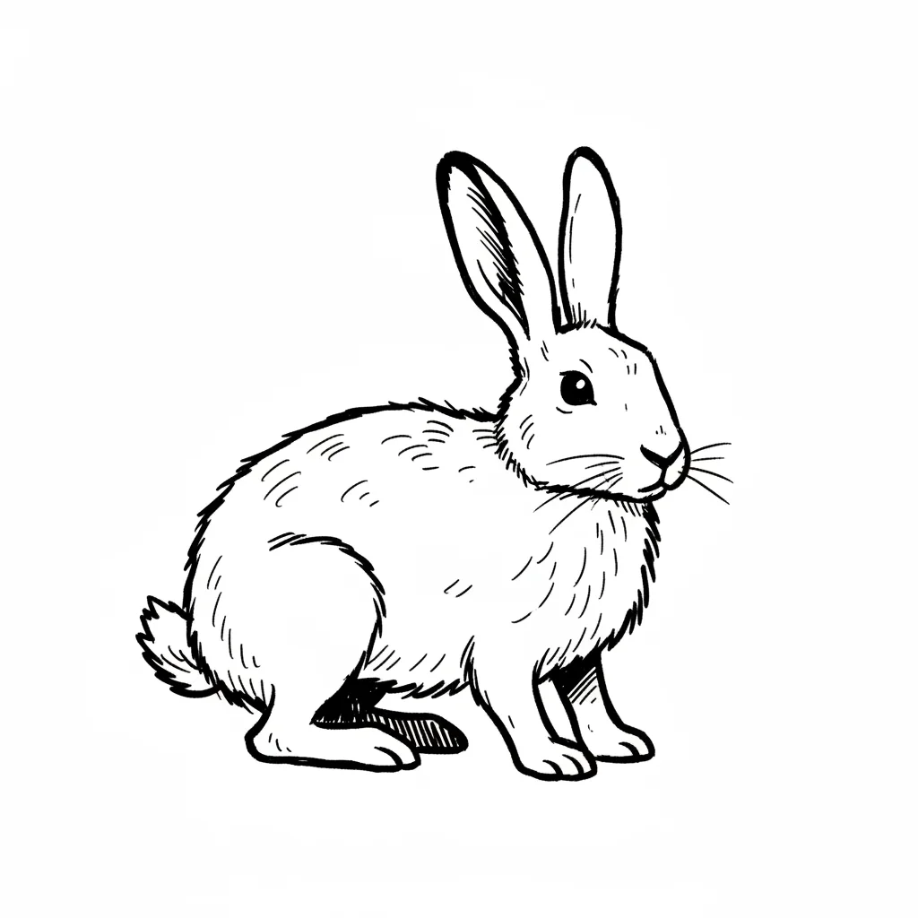 Ein einfacher, stilisierter Hase mit großen Ohren und niedlicher Haltung.