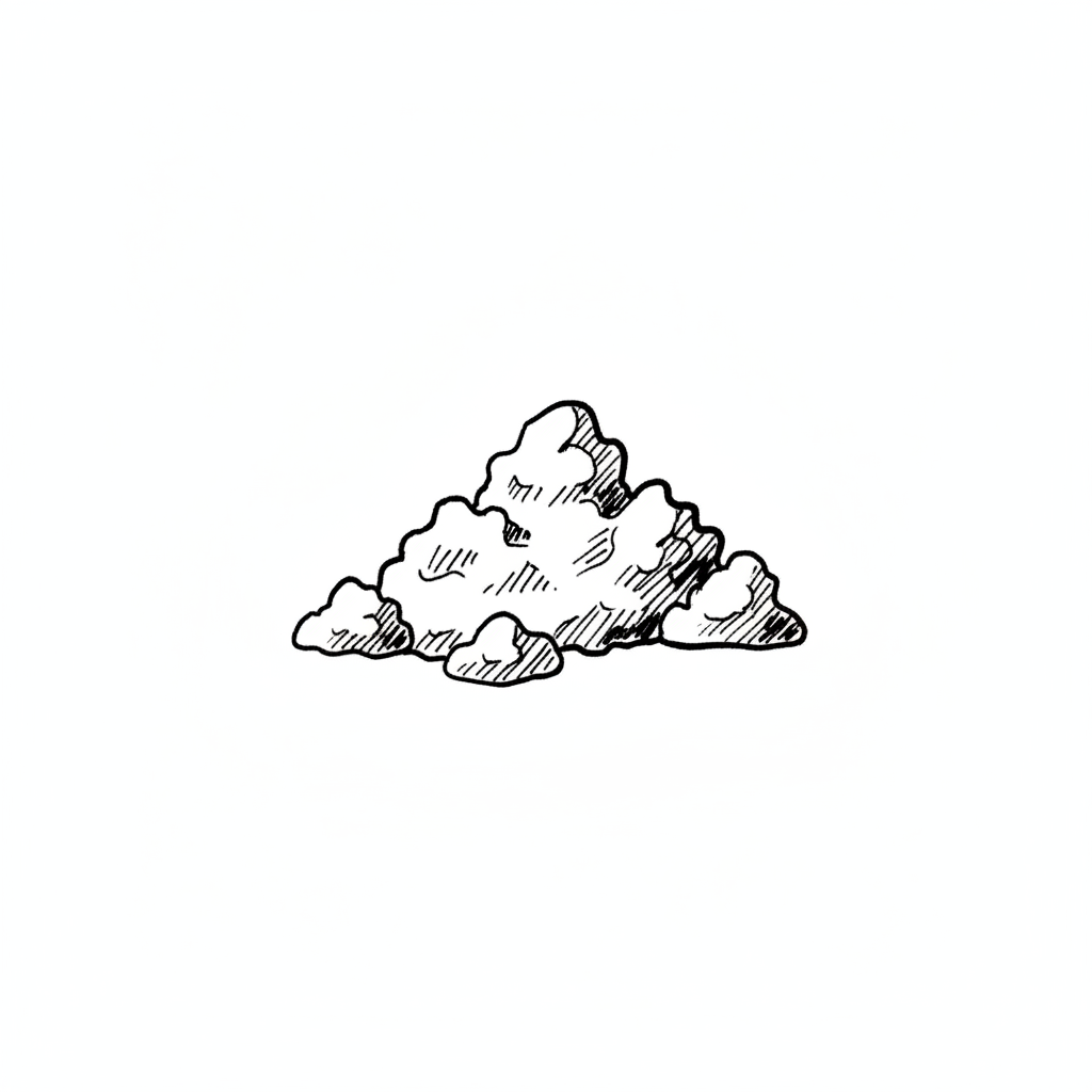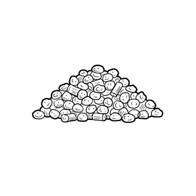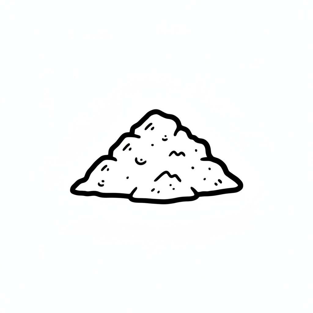 Eine einfache, schwarz-weiße Cartoon-Zeichnung eines kleinen Haufens aus körnigem Material.