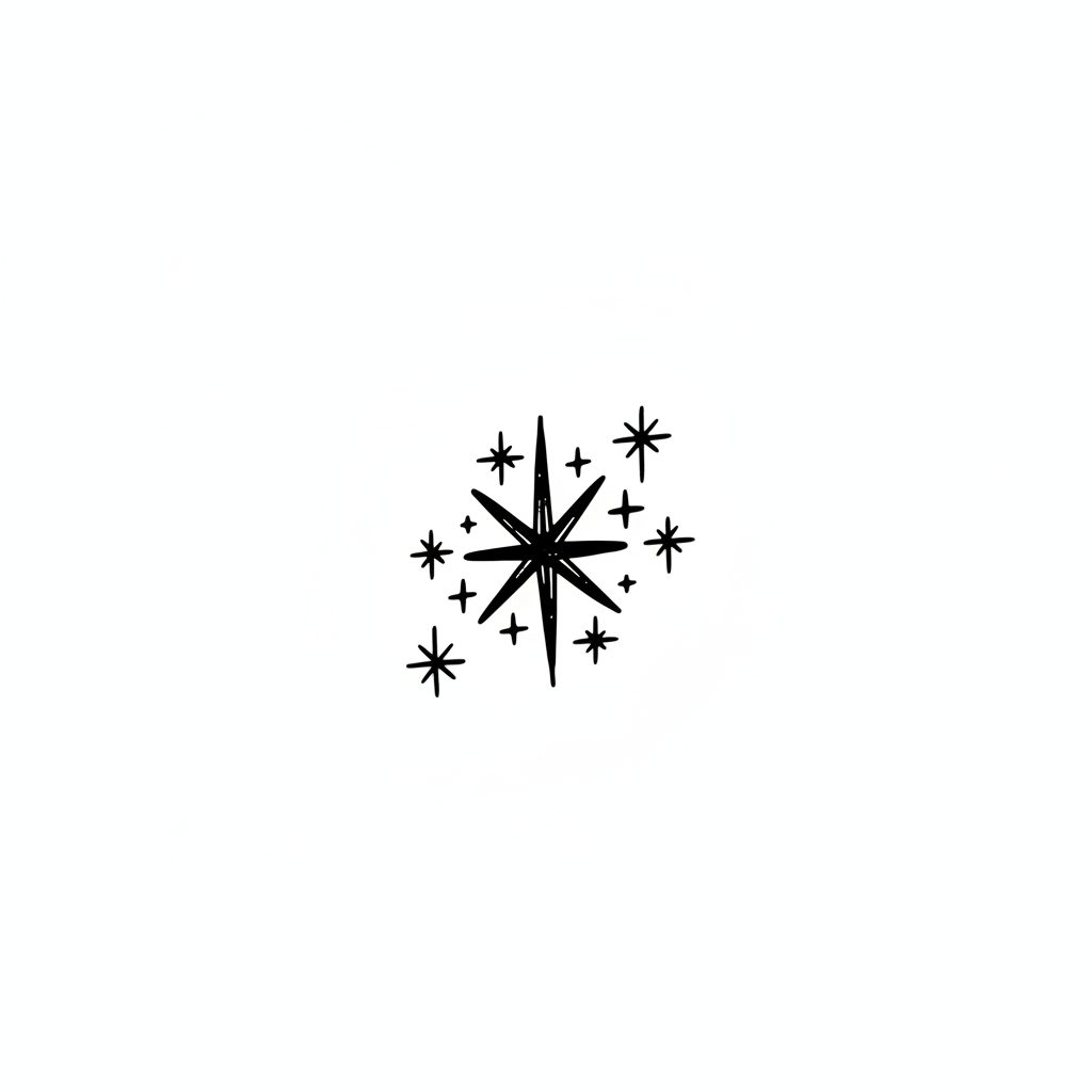 Stilisierter Sternenhaufen mit einem großen Zentralstern und kleineren Funkeln.