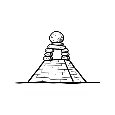 Stilisierte Zeichnung eines Inukshuk aus gestapelten Steinen auf einer Pyramidenbasis.