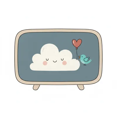 Eine süße Wolke mit einem Vogel, der ein Herzchen balanciert.