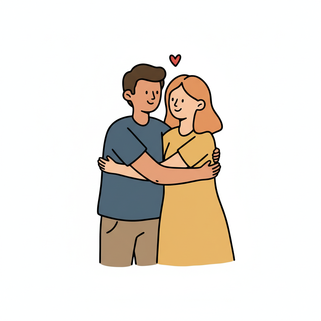 Ein Paar umarmt sich glücklich, umgeben von einem Herzen.
