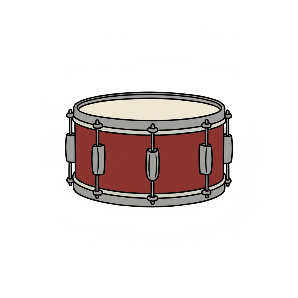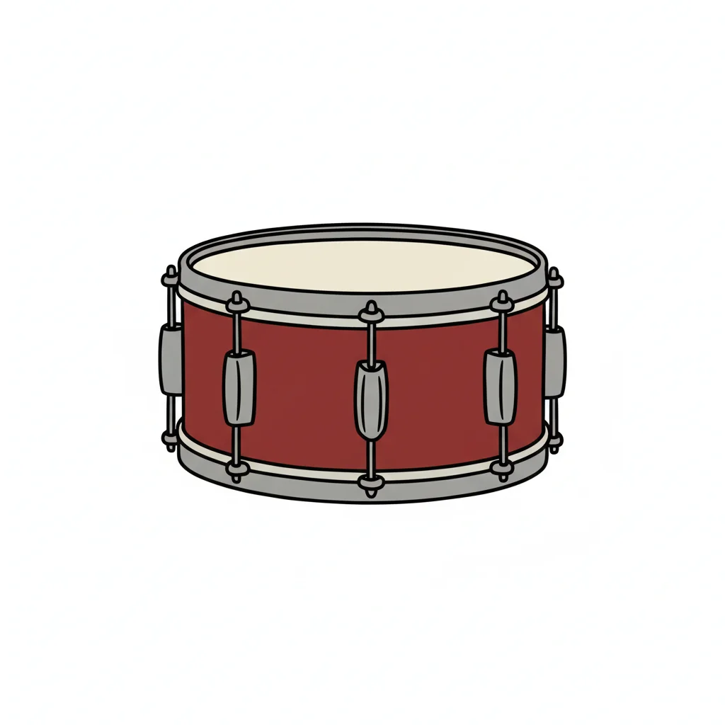 Illustration einer roten Snare Drum mit silbernen Details auf weißem Hintergrund.