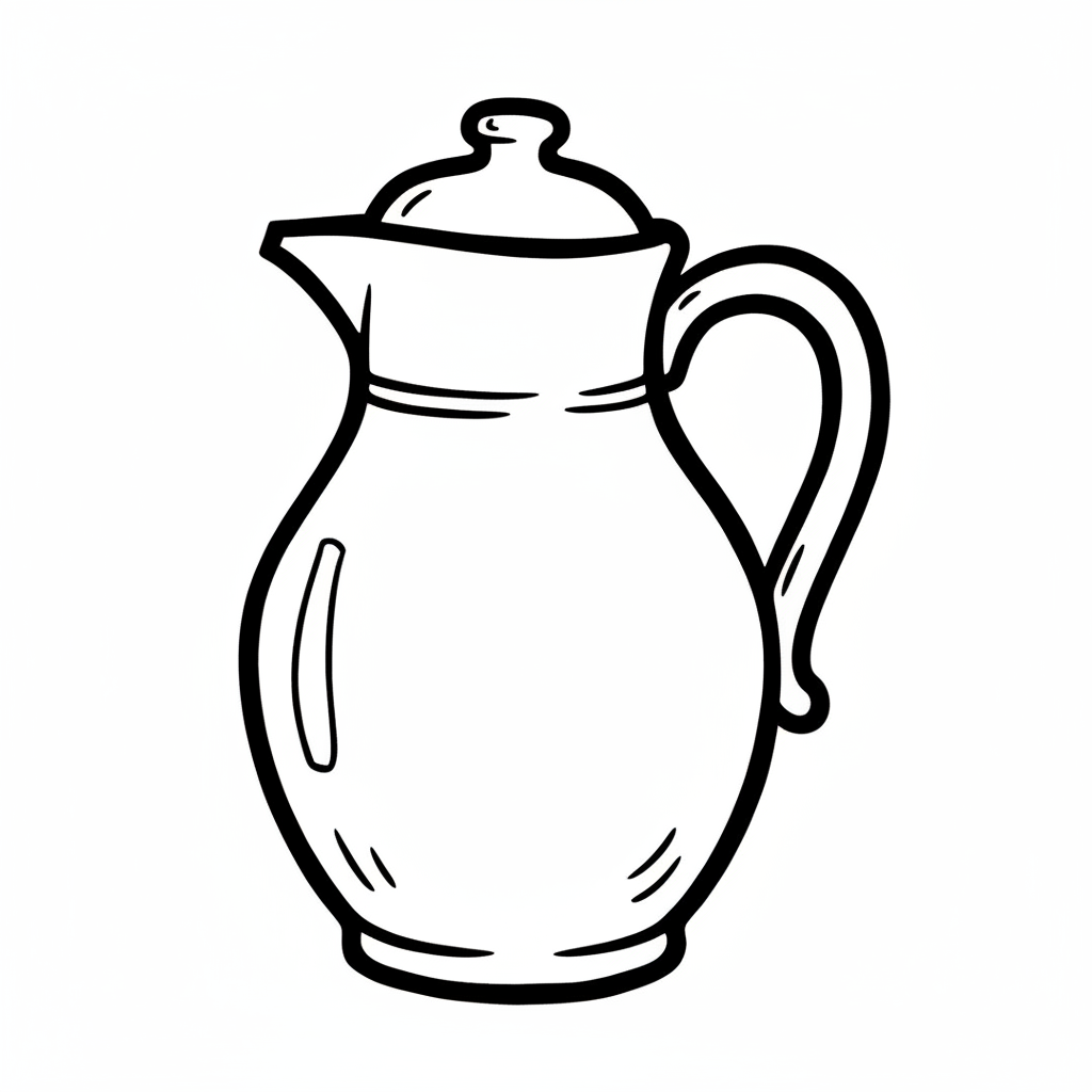Eine einfache, stilisierte Kanne mit einem runden Körper und einem Ausguss.