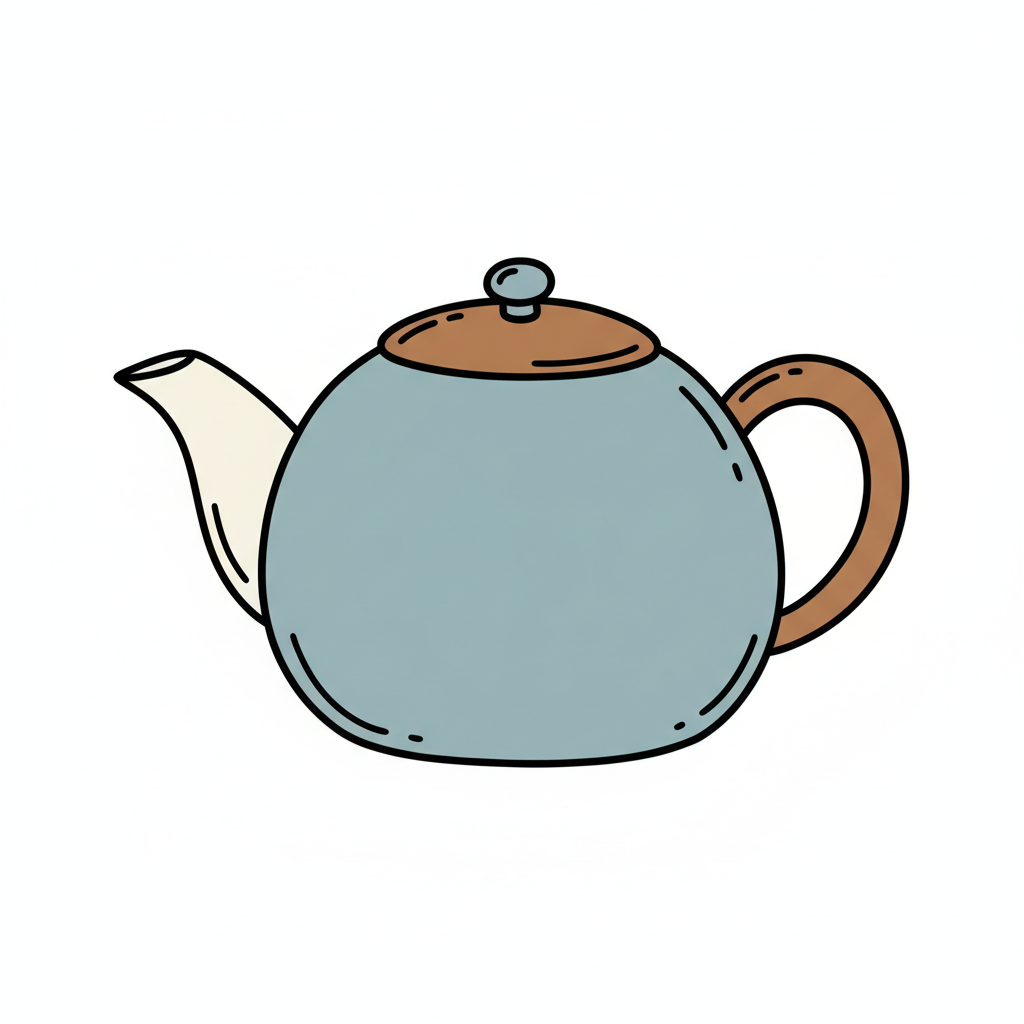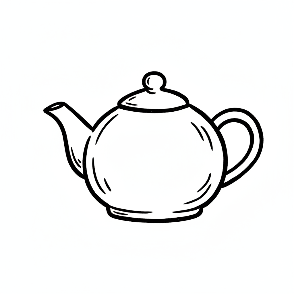 Eine einfache, skizzierte Teekanne in Schwarz-Weiß.