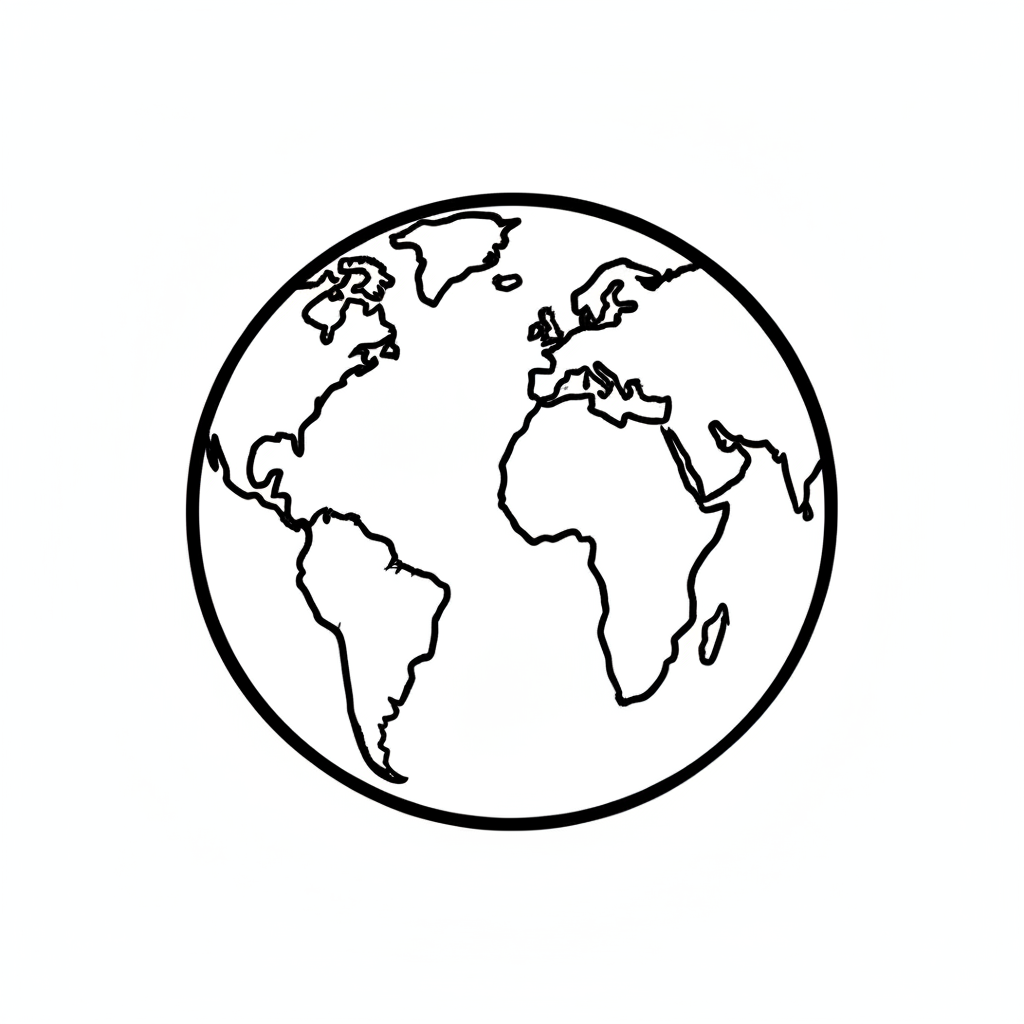 Eine einfache, umrandete Weltkarte in Schwarz-Weiß.