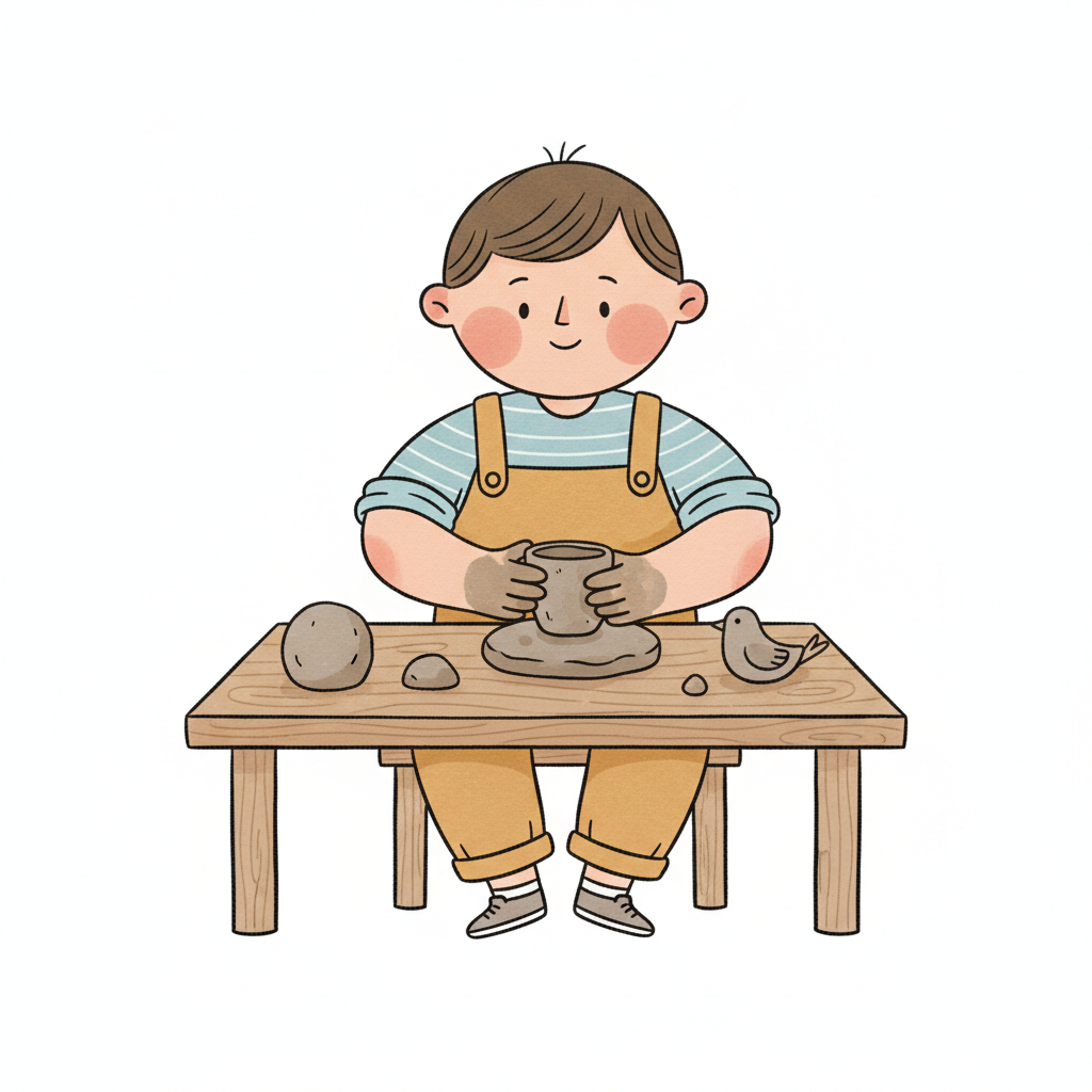 Ein Junge formt einen Tonbecher am Tisch.