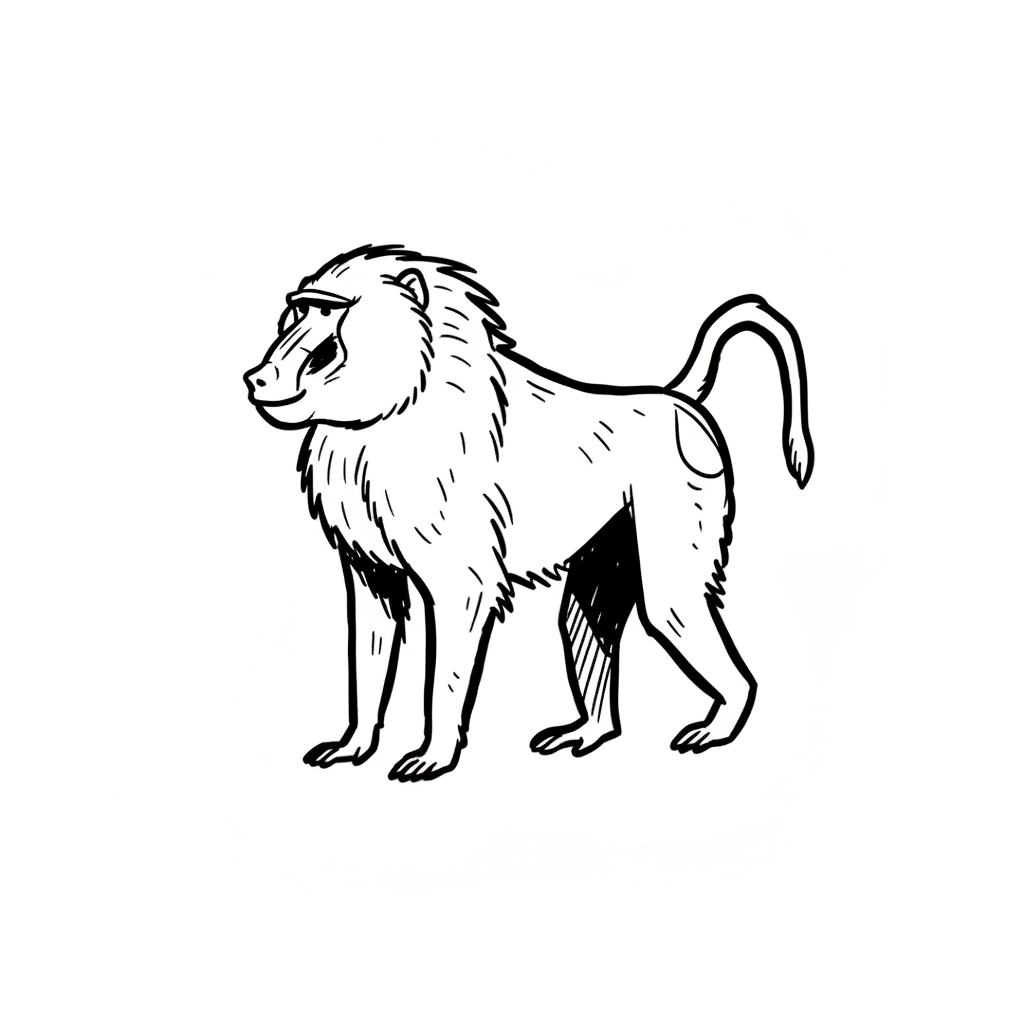 Ein skizzenhafter Löwe mit prächtiger Mähne steht stolz.