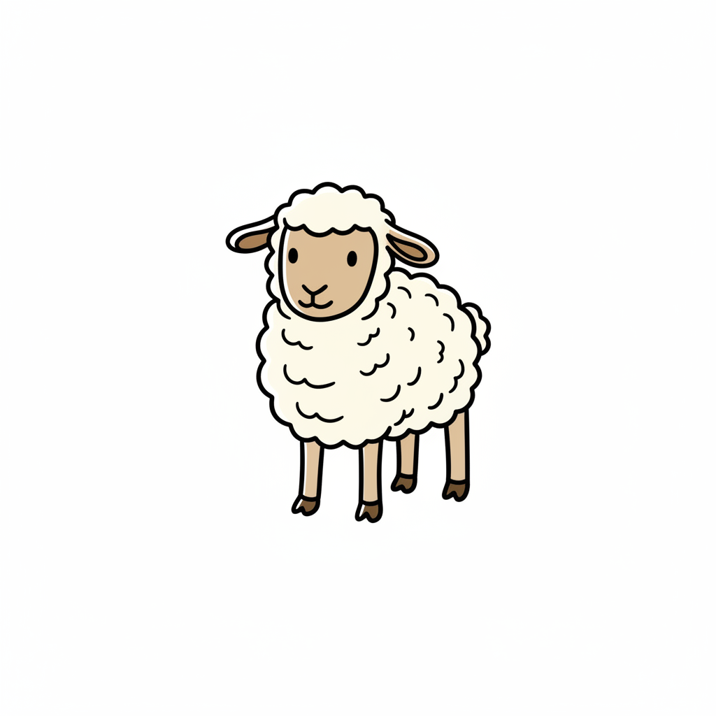 Ein niedliches, cartoonhaftes Schaf mit lockigem, weißem Fell.