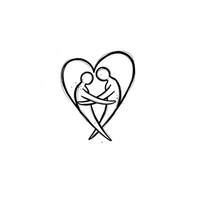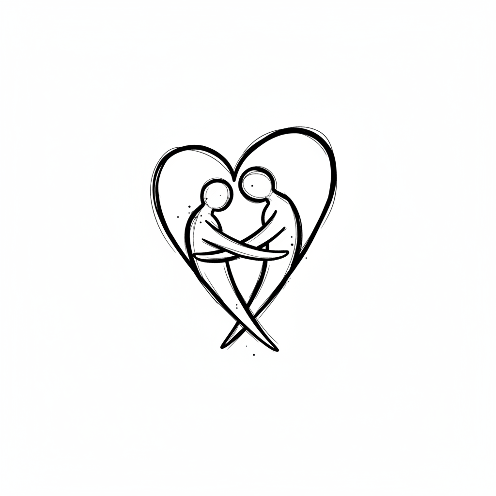 Zwei Figuren umarmen sich in einem Herzsymbol.