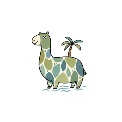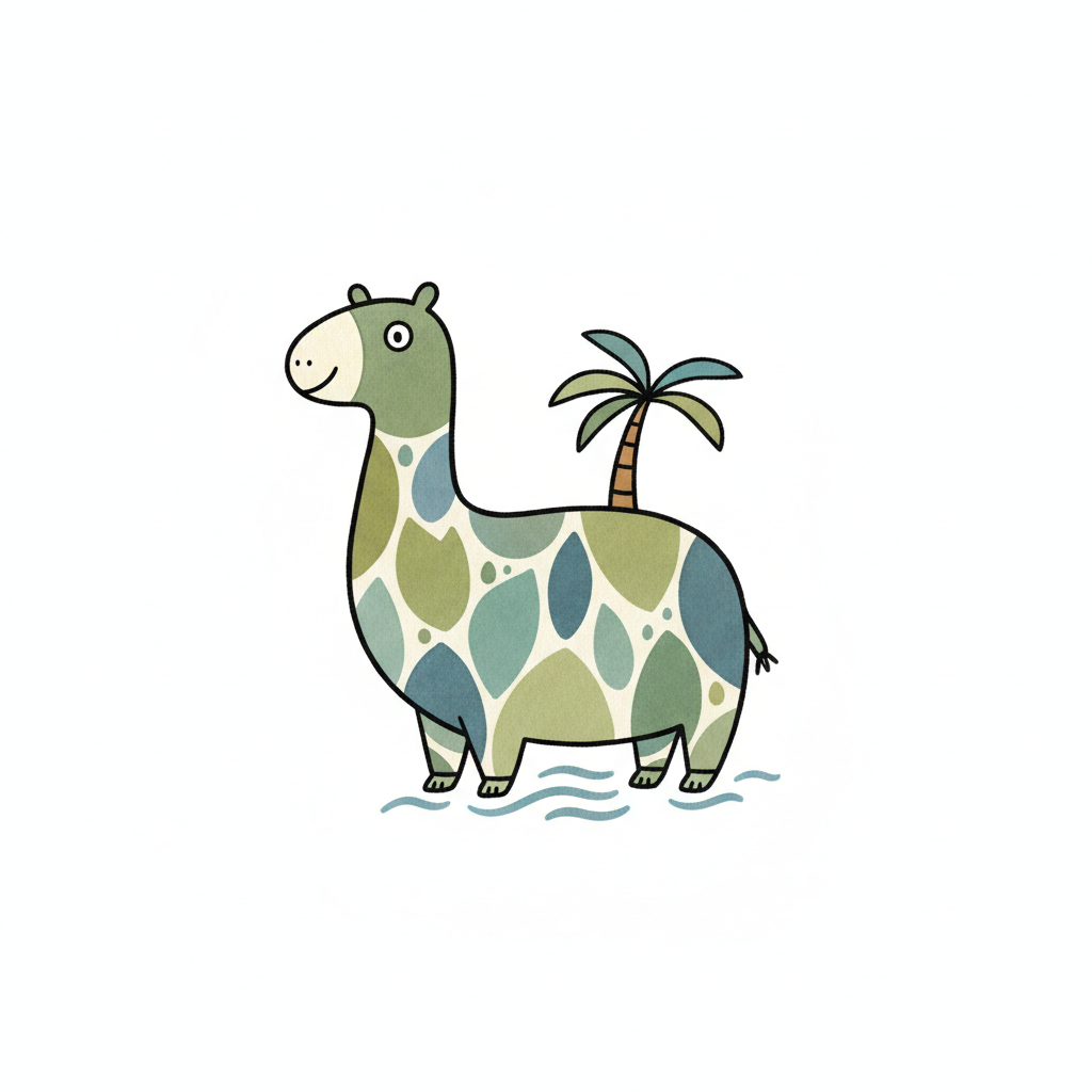 Ein lustiges, gezeichnetes Tier mit Palmenkuppe und farbigen Mustern.