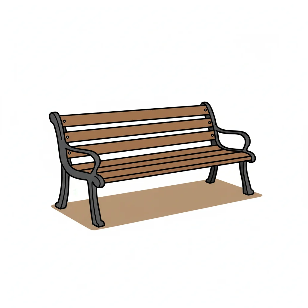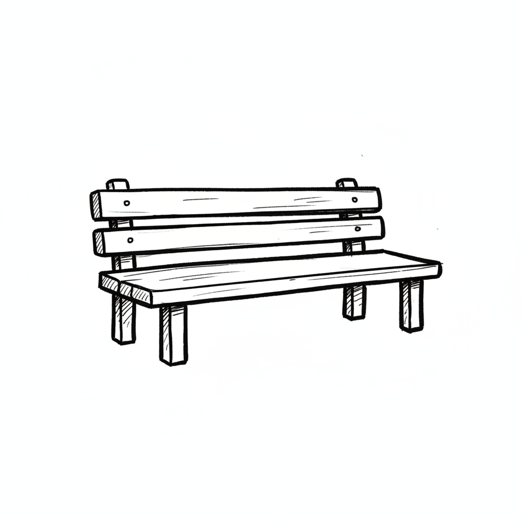 Eine einfache, skizzierte Holzbank ohne zusätzliche Verzierungen.