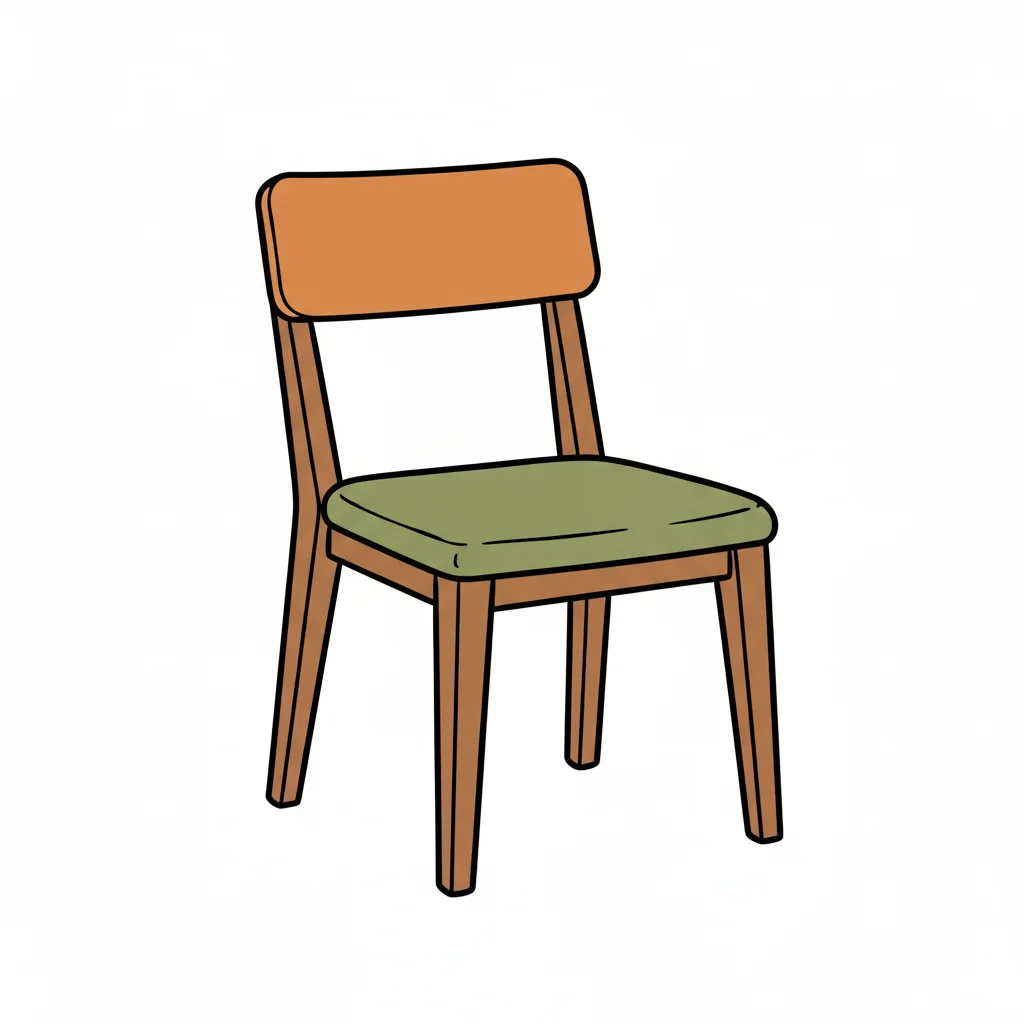 Ein einfacher Holzstuhl mit einem grünen Polstersitz.