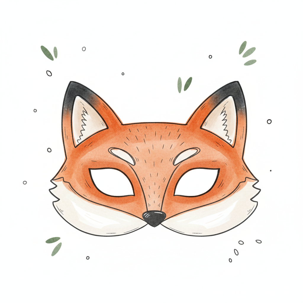 Eine illustrierten Fuchsmaske mit spitzen Ohren und Augenöffnungen.
