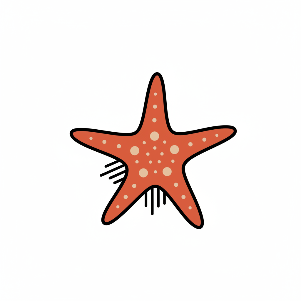 Eine stilisierte Zeichnung eines fünfzackigen Seesterns.