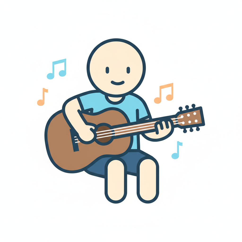 Ein einfacher Charakter spielt Gitarre und genießt die Musik.