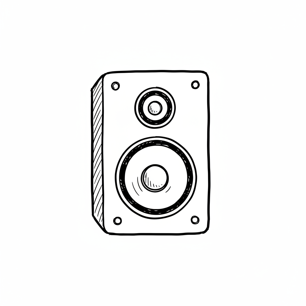Skizze eines Lautsprechers mit hohem und tiefen Frequenzbereich.