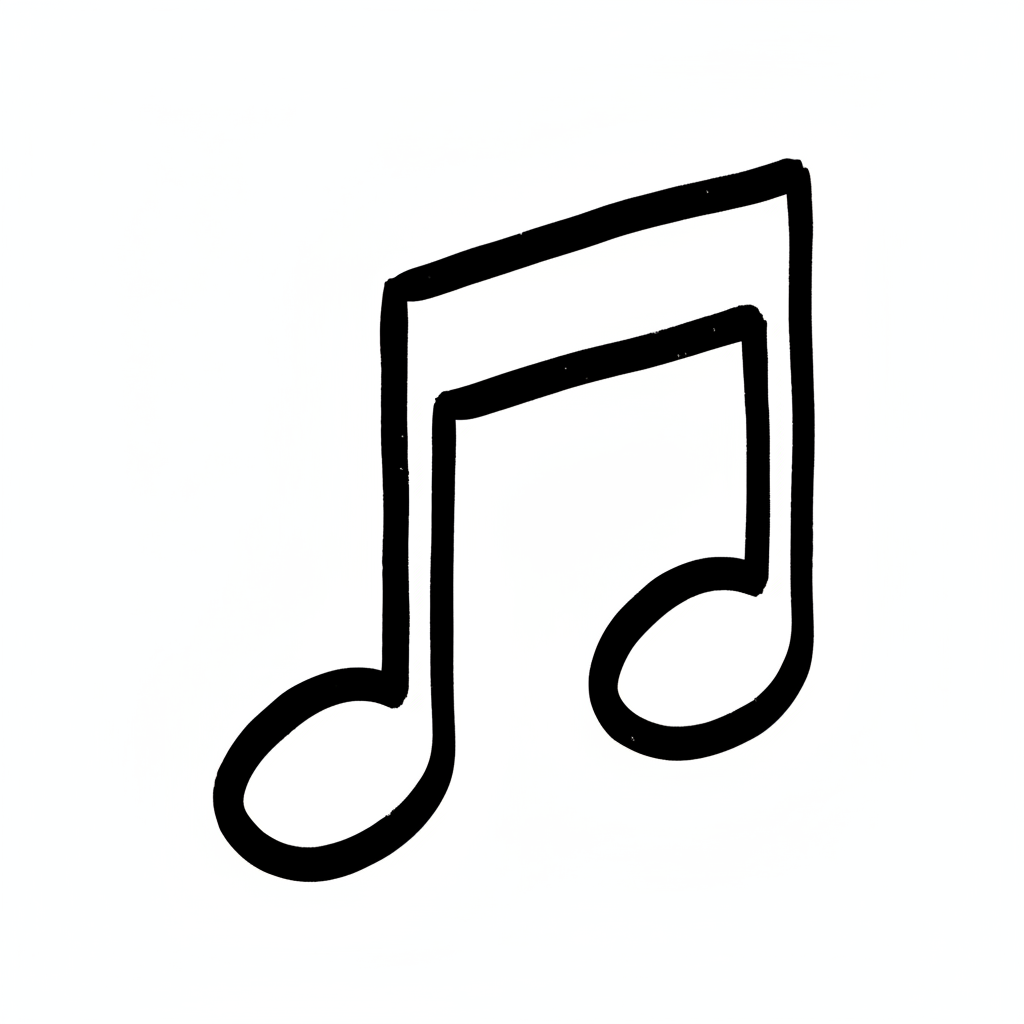 Ein einfaches, handgezeichnetes Symbol einer Musiknote.