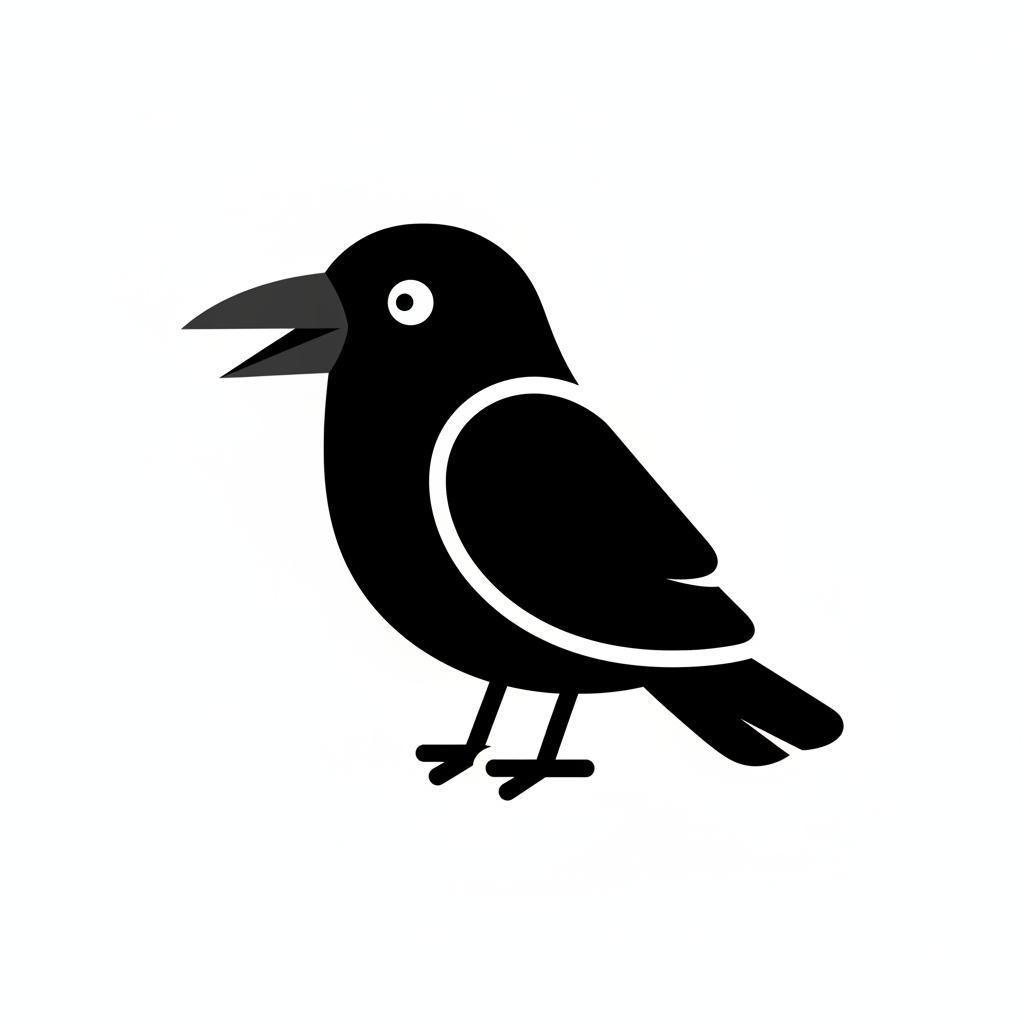 Ein stilisierter schwarzer Vogel mit einem offenen Schnabel.