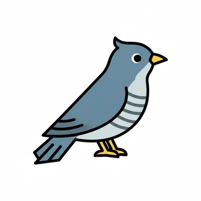 Ein einfacher, cartoonartiger blauer Vogel mit gelbem Schnabel.